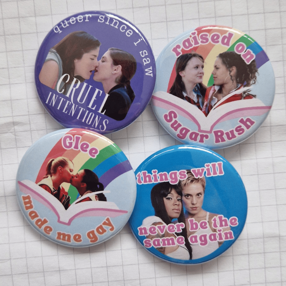 We sell merch to help cover the costs of our events, shows, and creative activities for LGBTQIA+ people. All items are also available at our events, on a PWYC/donation basis.